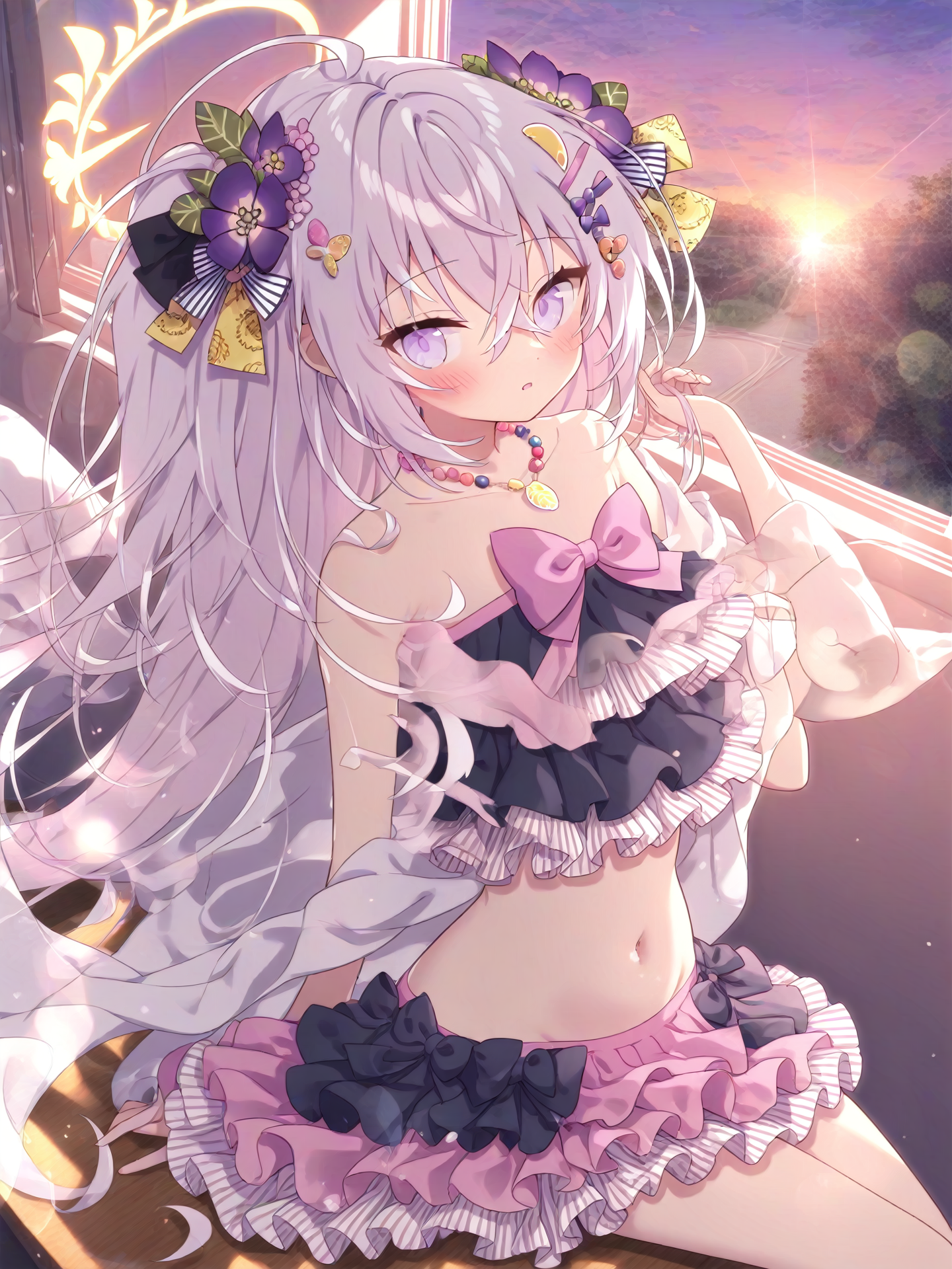 下面的图片在图生图中进行放大,放大算法使用 R-ESRGAN 4x+ Anime6B,重绘幅度 设置为 0.4。
