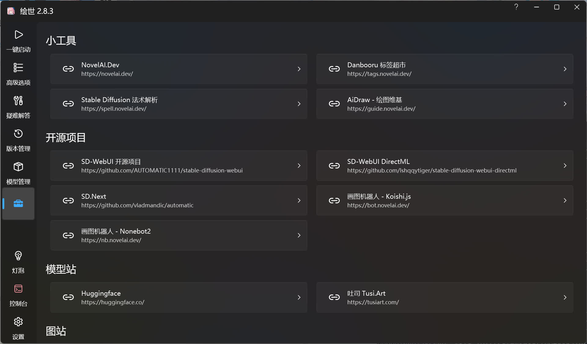 绘世启动器是由秋葉aaaki喵喵hmkai共同开发的 Stable Diffusion WebUI 启动器,用于 Stable Diffusion 项目,简化了 Stable Diffusion 项目的启动和管理,同时还拥有疑难解答系统用于诊断常见的错误,解决用户使用时产生的部分问题,是一个非常实用的工具。