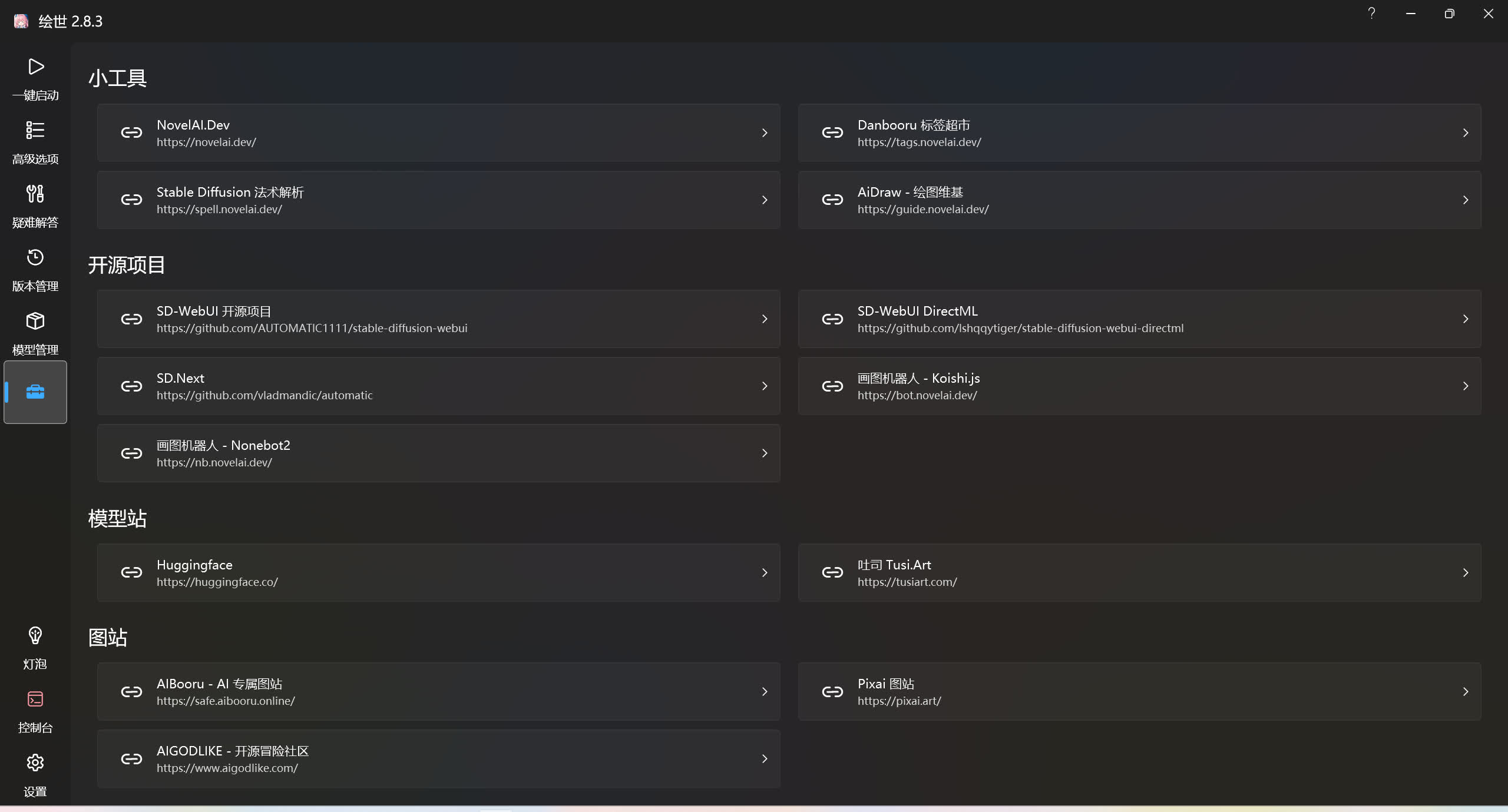 这里是绘世启动器的其他功能的说明。